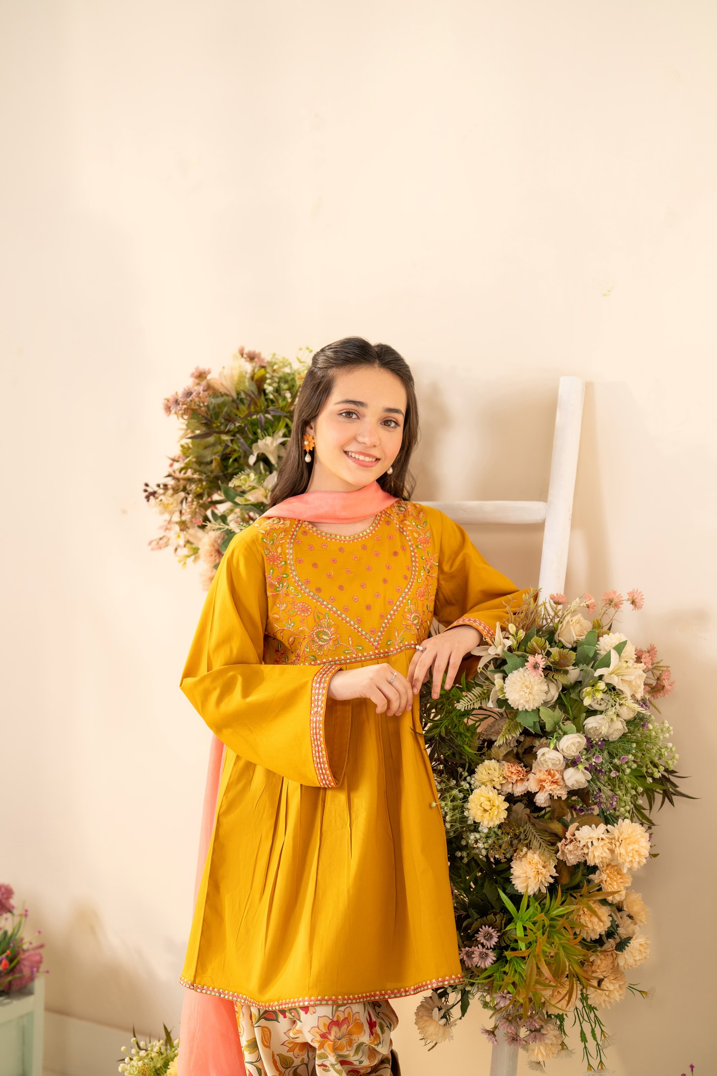 Aarij – Embroidered Cotton Lawn 3-Piece Pakistani Dress for Girls | Triple