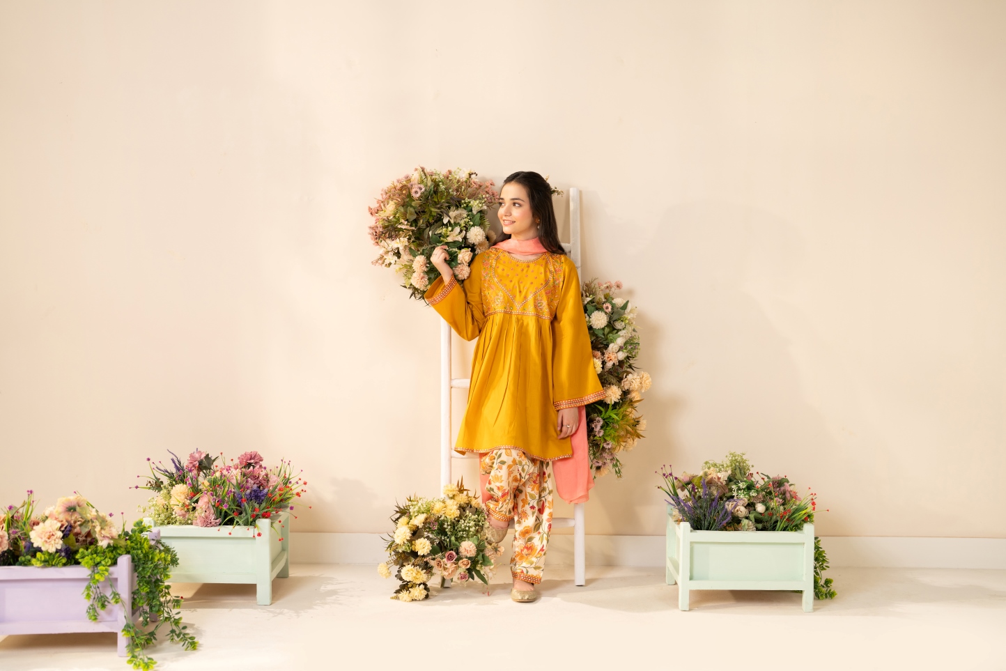Introducing the Aarij dress, a captivating 3-piece ensemble imported from Pakistan, now brought to Bangladesh by Triple. This outfit is designed to reflect the rich cultural heritage of Pakistan, tailored for young girls who appreciate traditional aesthetics.