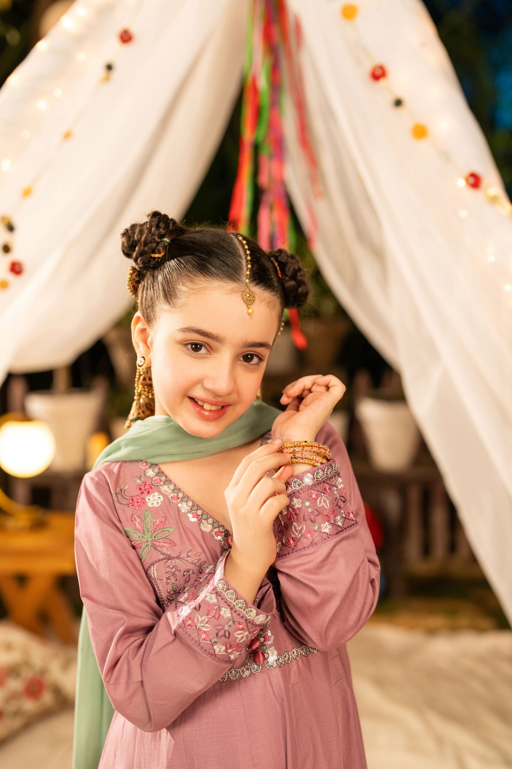 Arshiya – Embroidered Cotton Lawn 3-Piece Pakistani Dress for Girls | Triple