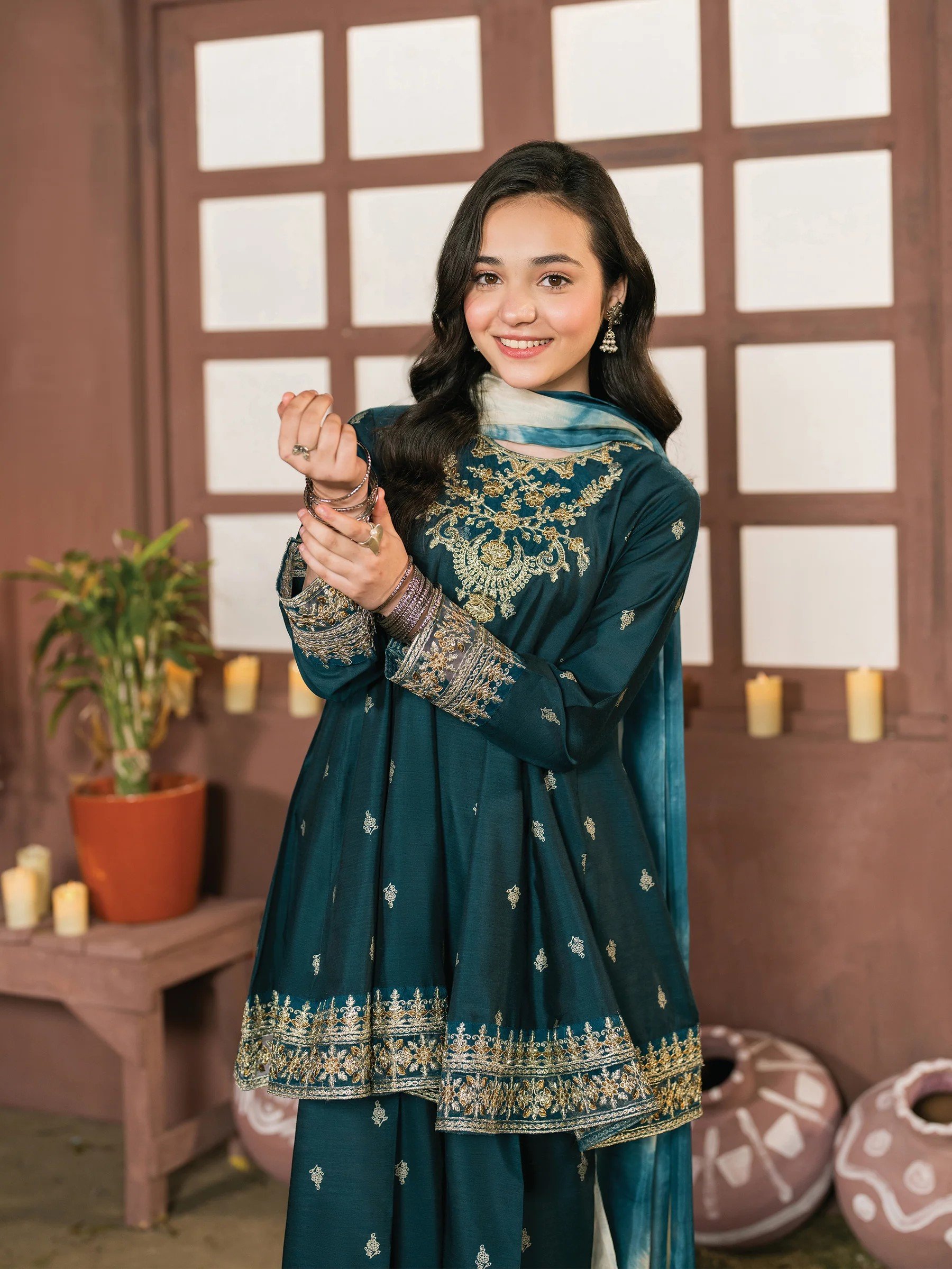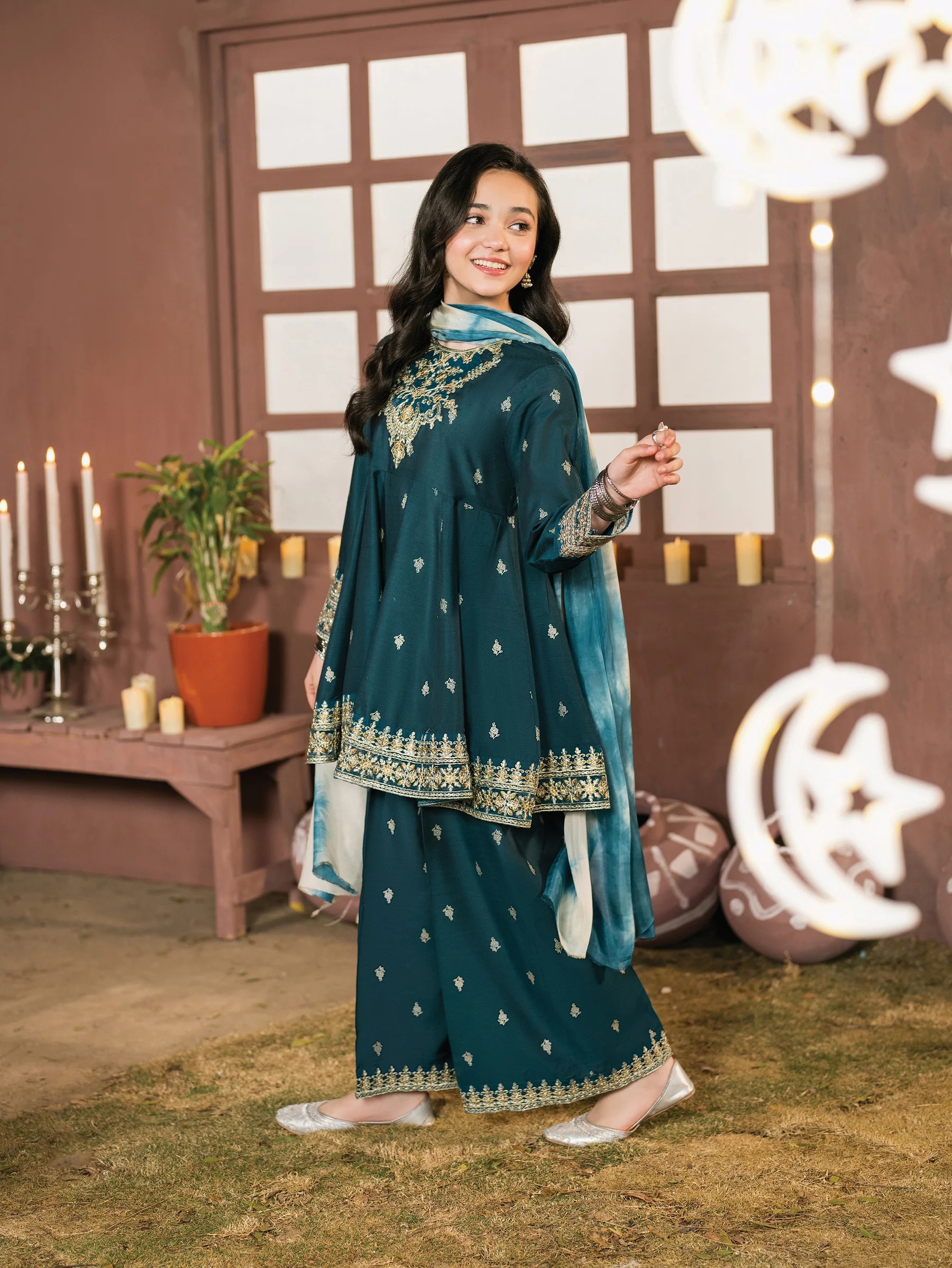Khushi – Embroidered Cotton Silk 3-Piece Pakistani Dress for Girls | Triple