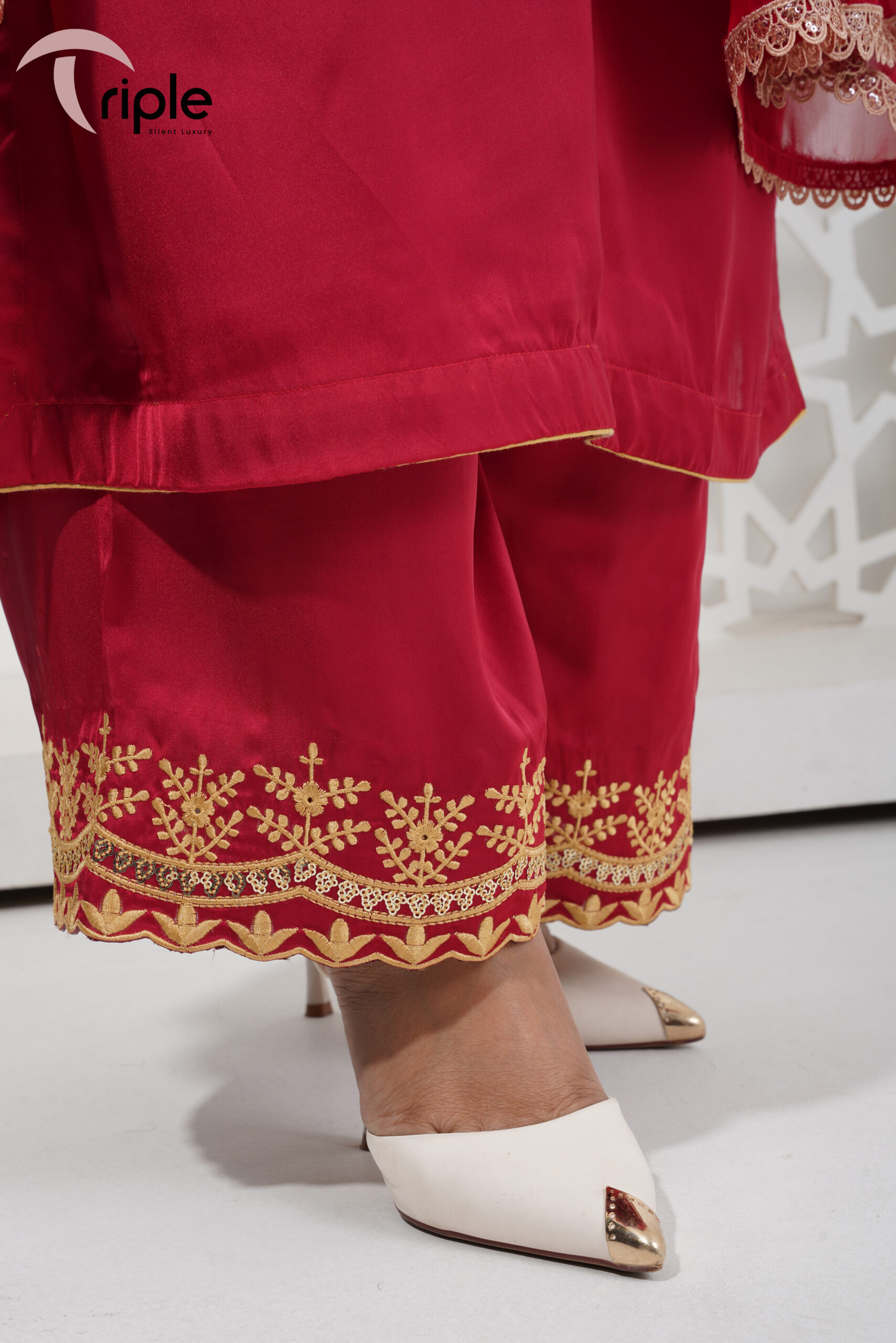 Rozen is an elegant red luxury pret 3-piece outfit, designed for women who appreciate classic festive style with a refined finish. This set is ideal for bridal attendance, weddings, dawat programs, and special occasions where a graceful red look feels timeless and appropriate.