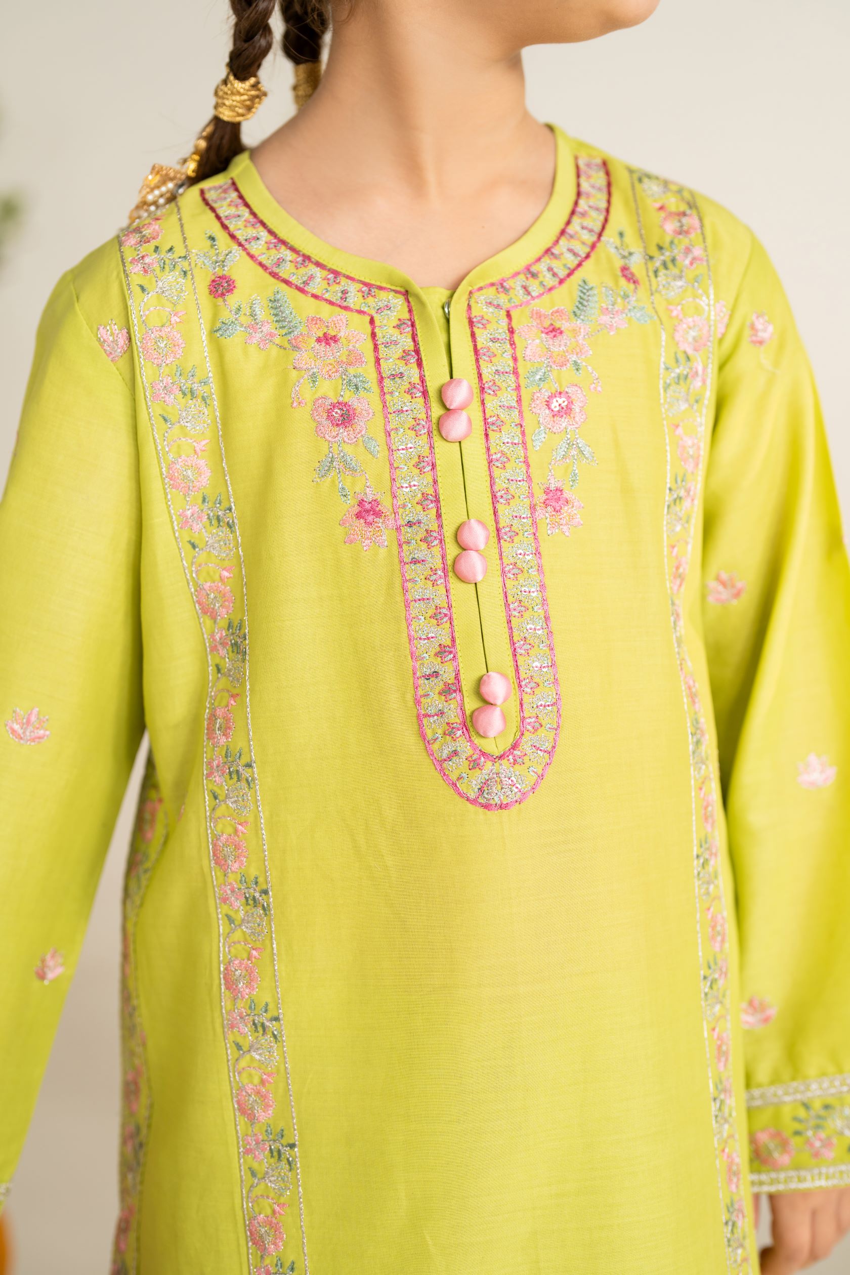 The breathable cotton lawn ensures comfort, while the delicate embroidery adds a touch of sophistication. Perfect for festive occasions, family gatherings, or cultural events, the Sabika dress offers versatility and style.