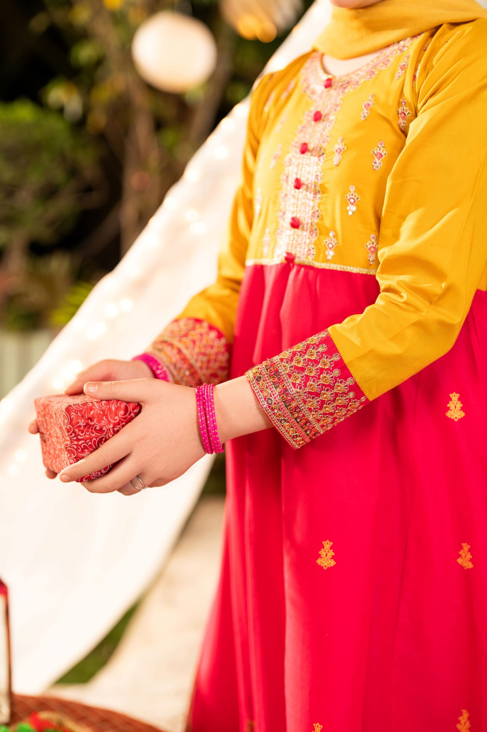 Introducing the Sonam dress, a captivating 3-piece ensemble imported from Pakistan, now brought to Bangladesh by Triple. This outfit is designed to reflect the rich cultural heritage of Pakistan, tailored for young girls who appreciate traditional aesthetics.